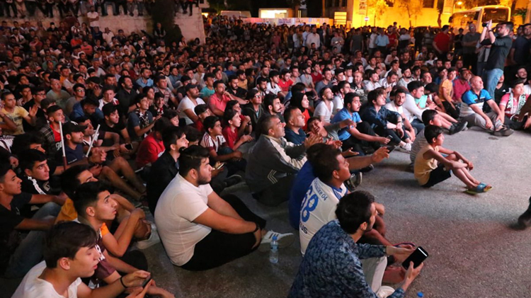 Spor Toto 1. Lig play-off yarı final ilk maçında Hatayspor, Adana Demirspor’a konuk oldu. Deplasmanda oynanan maçı Hatay Büyükşehir Belediyesi, taş bina önüne kurduğu dev ekranda vatandaşlarla buluşturdu.
