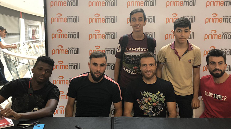 Spor Toto 1. Lig ekiplerinden Hatayspor’un futbolcuları imza gününde taraftar ile buluştu. Akın Alkan, Mesut Çaytemel, Selim Ilgaz ve Sadio Diallo imza gününde bordo beyazlı taraftarlarla bir araya geldi.