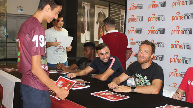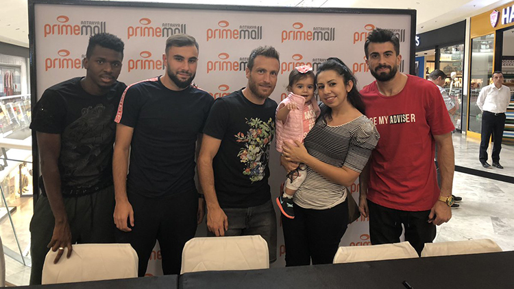 Hataysporlu futbolcular 2 saat boyunca imza töreni gerçekleştirerek, taraftarlarla imza günü hatırası için fotoğraf çektirdi.