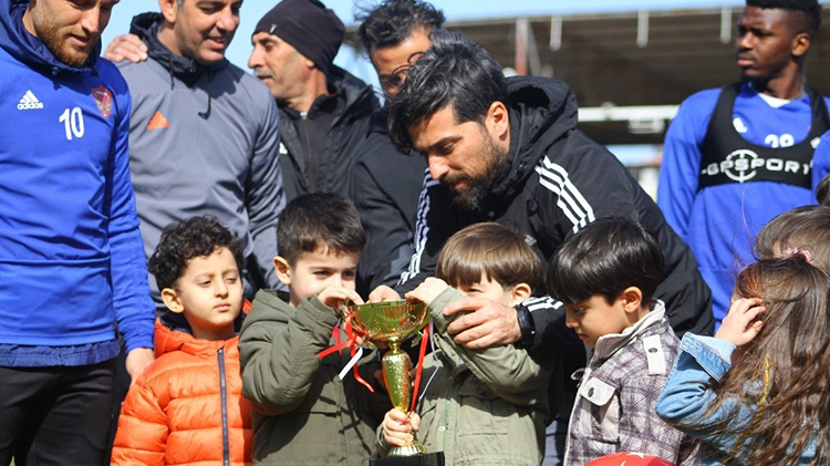 Ayrıca, Antakya Atatürk Stadı’nda yapılan antrenmanı 3-6 yaş grubundaki anaokulu öğrencileri de izledi. Minik öğrenciler kendi hazırladıkları kupayı Hataysporlu futbolculara hediye ettiler.